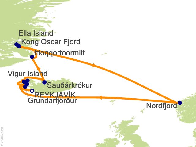 The friendly town of Saudarkrokur is located in a fertile valley along the south-western shore of Skagafjordur Fjord. It's the largest town in northwest Iceland, though is home to just over 2,500 people. The charming downtown will welcome you as you stroll through the small collection of distinctive, traditional buildings where the past seems to be brought back to life. This afternoon, your Discovery Yacht will cross the Arctic Circle. Be sure to find yourself a good vantage point for this awe-inspiring occasion. Although the line is invisible, the surrounding scenery provides stunning atmosphere. Inclusions: Breakfast, Lunch, Dinner. ...