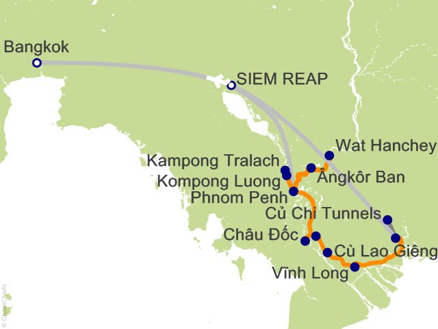 The Royal Treatment. The remainder of the day is yours to enjoy at your leisure. Just before dinner, children from a local orphanage will perform a show, featuring local song and dance. Onboard, we cross the border at Kaam Samnor in Cambodia and Vinh Xuong International Land and River Border Gate in Vietnam. (Breakfast, Lunch, Dinner) ...