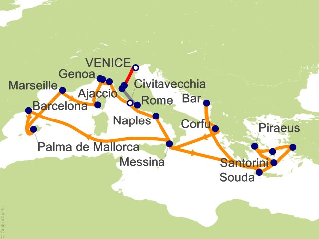 There's so much more ahead of you on your journey, so enjoy your final breakfast on land. From the Renaissance and Baroque eras, you'll marvel at the sprawling Vatican Museums, the Sistine Chapel and St. Peter's Basilica, the largest most awe-inspiring church in the world. After some free time to have lunch and do some last minute shopping in St. Peter's Square, make your way to meet your ship in the city of Civitavecchia. (B) ...